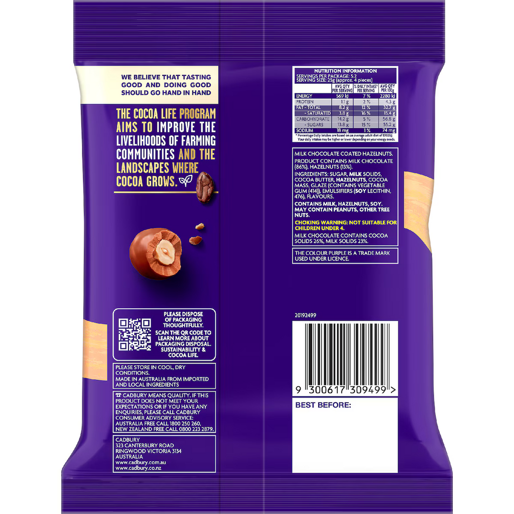 Enjoy Cadbury chocolate in a fun and delightful ball, these milk chocolate coated hazelnuts are perfect for sharing.
