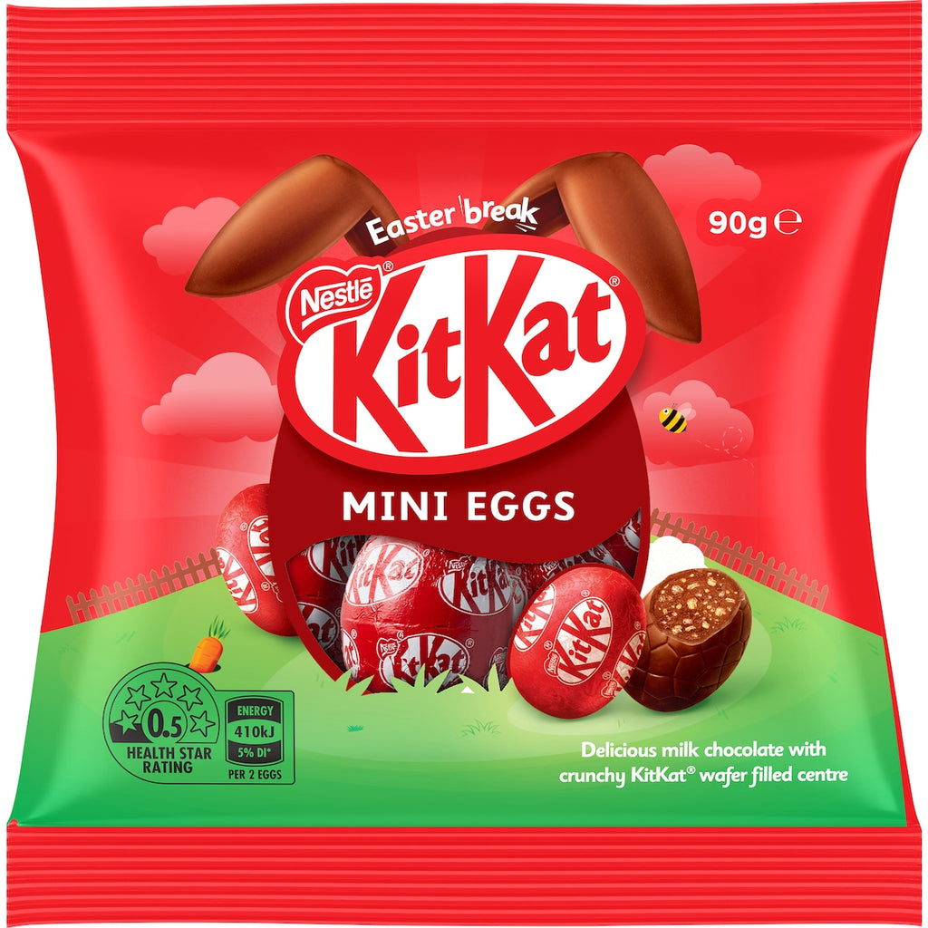 Have a break this Easter! This bag is filled with individually wrapped KitKat Easter Eggs – Delicious milk chocolate eggs containing smooth praline with crushed KitKat wafer pieces. Perfect for your egg hunt, or just as a gift to family and friends.
