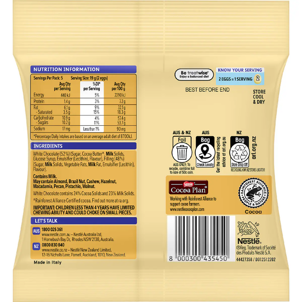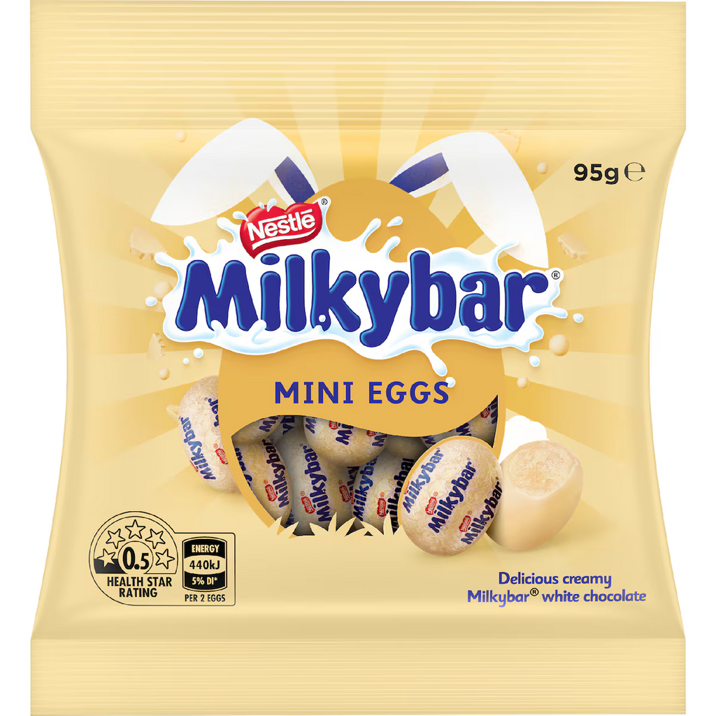 Fall in love with the creamy taste of MILKYBAR this Easter. This bag is filled with deliciously smooth white chocolate mini easter eggs made with the goodness of real milk!