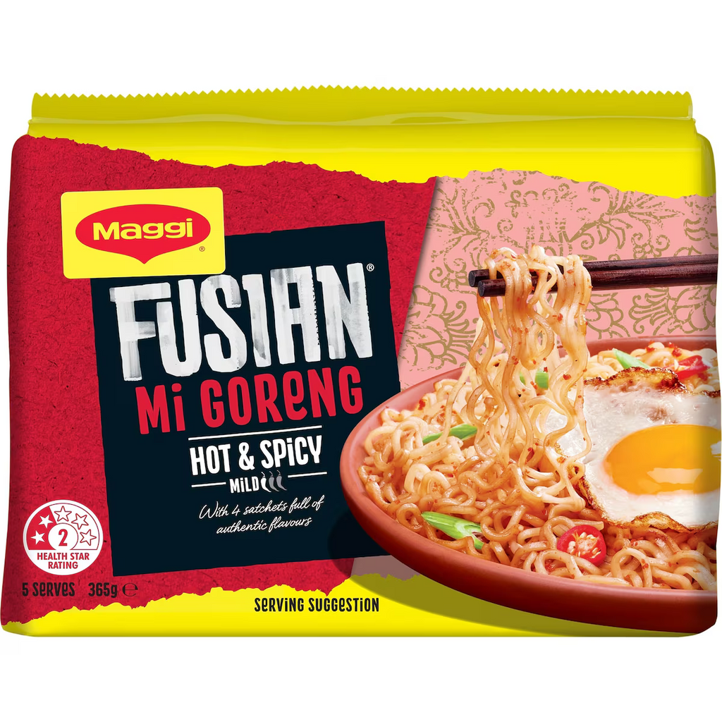 MAGGI FUSIAN Noodles Mi Goreng Hot & Spicy Flavour will take you on a flavour adventure! With authentic Asian spices in every mouthful, these instant noodles are perfect for those who enjoy a bit of spice in their life!