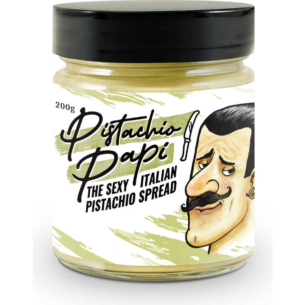 Pistachio Papi is a creamy, gluten-free, vibrant green pistachio spread, free from artificial colors, and is Halal certified.